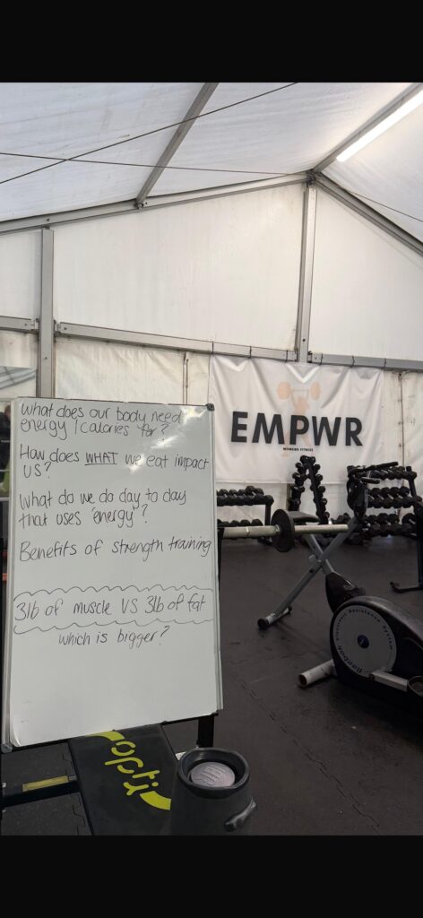We started with a demo and explanation on how our body needs energy to survive, to exercise and the impact it has when we under eat, or skip meals (using bottles of water and a bowl) then we spoke about what happens when we over consume (Mainly on the high sugar & ultra processed foods). The side effects and impact this has on mood, energy, concentration levels, hunger and your overall health.