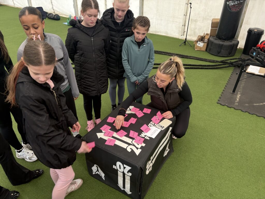 ๐๐ผโโ๏ธThe students then took part in a warm up where the girls had to run and sort food groups (on post it notes) into sections and decide which was a protein, a fat and carbs.