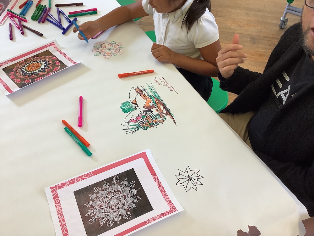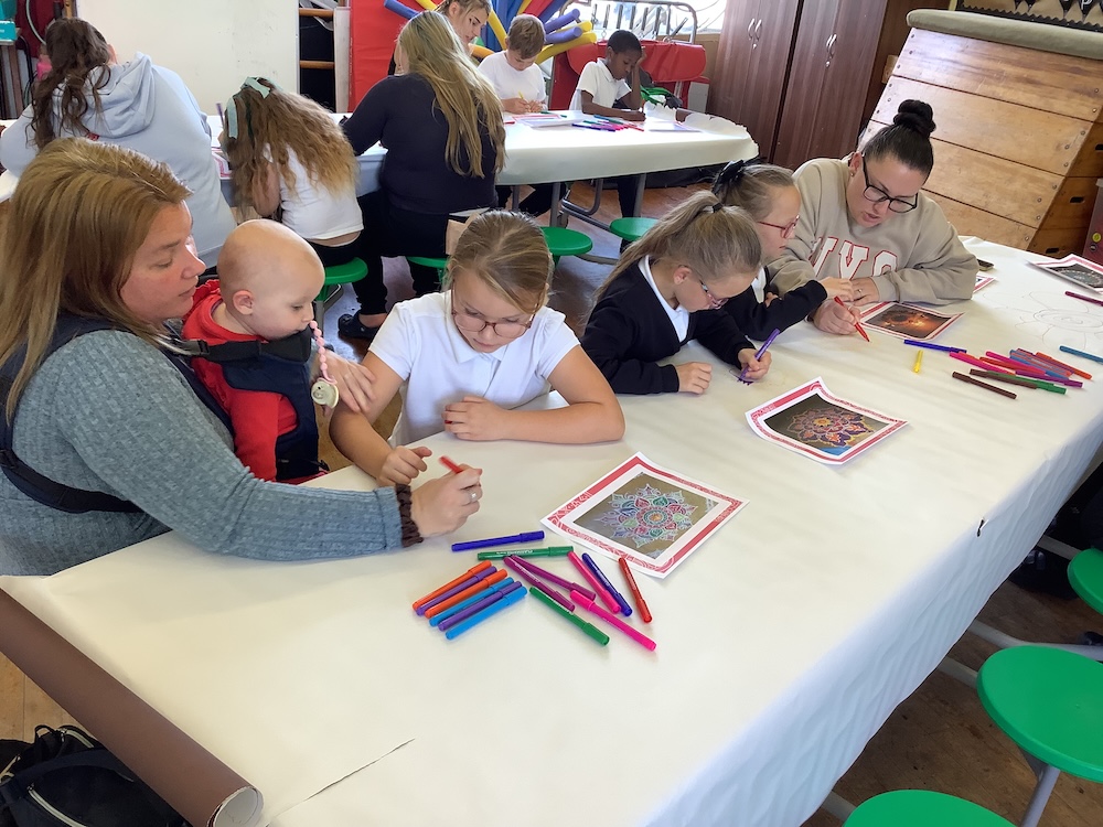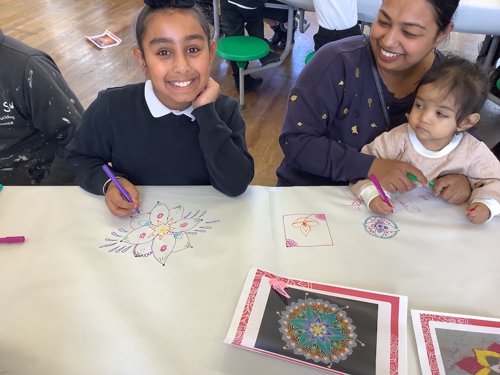 After the introduction, children and parents worked side by side to create their own beautiful Rangoli patterns, filling the room with colour, creativity, and community spirit. To round off the afternoon, Ms Fowler treated everyone to delicious samples of samosas and onion bhajis, offering a taste of traditional Indian cuisine.