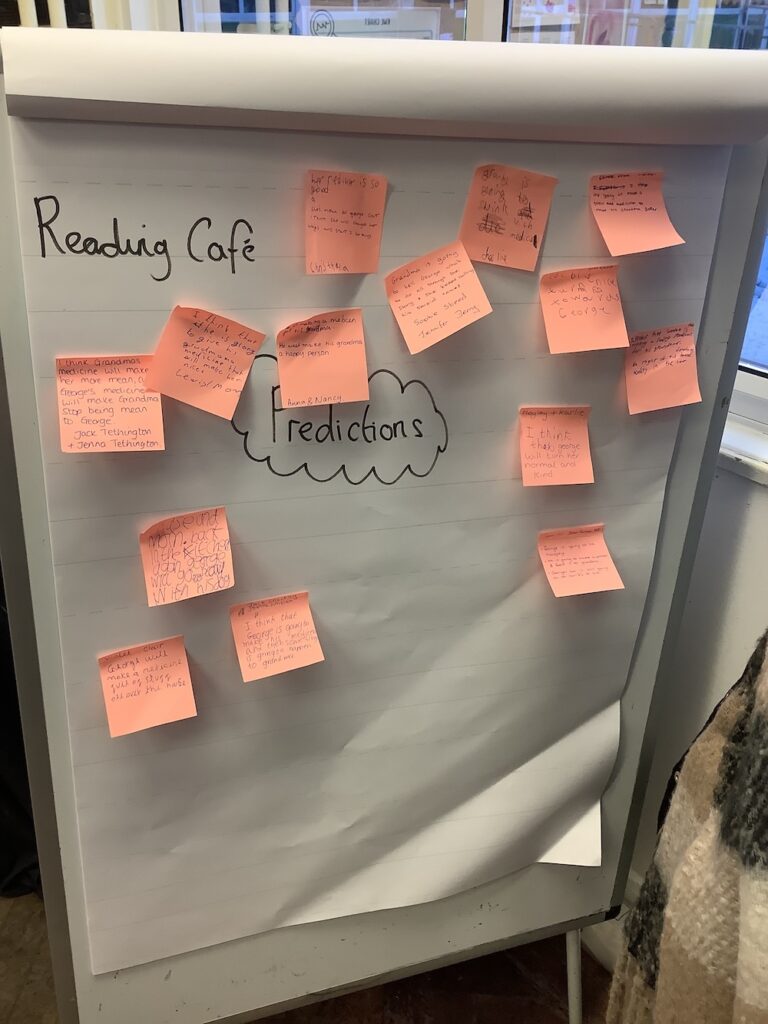 Year 4 invited parents/carers in today for a successful reading cafe where both the children and adults enjoyed reading the first chapter of George's Marvellous Medicine and made predictions about what would happen next.