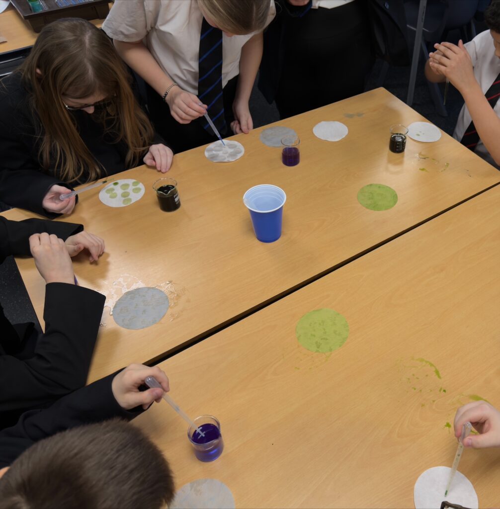 STEM Club pupils explored key laboratory skills by investigating accuracy and precision, using pipettes to produce consistent circles on filter paper. They then observed microscale electrolysis before generating and capturing carbon dioxide, which was successfully used to extinguish candles, demonstrating its properties in a memorable and engaging way. STEM Club pupils also explored key laboratory skills by producing biodegradable plastic from potato starch and glycerine. They carefully measured and mixed ingredients, heated the solution, and observed the chemical changes that transformed a liquid mixture into a flexible bioplastic. Once set, pupils tested the material’s strength and flexibility, linking the practical work to real-world applications of sustainable materials and plastics, making the session both hands-on and environmentally relevant.