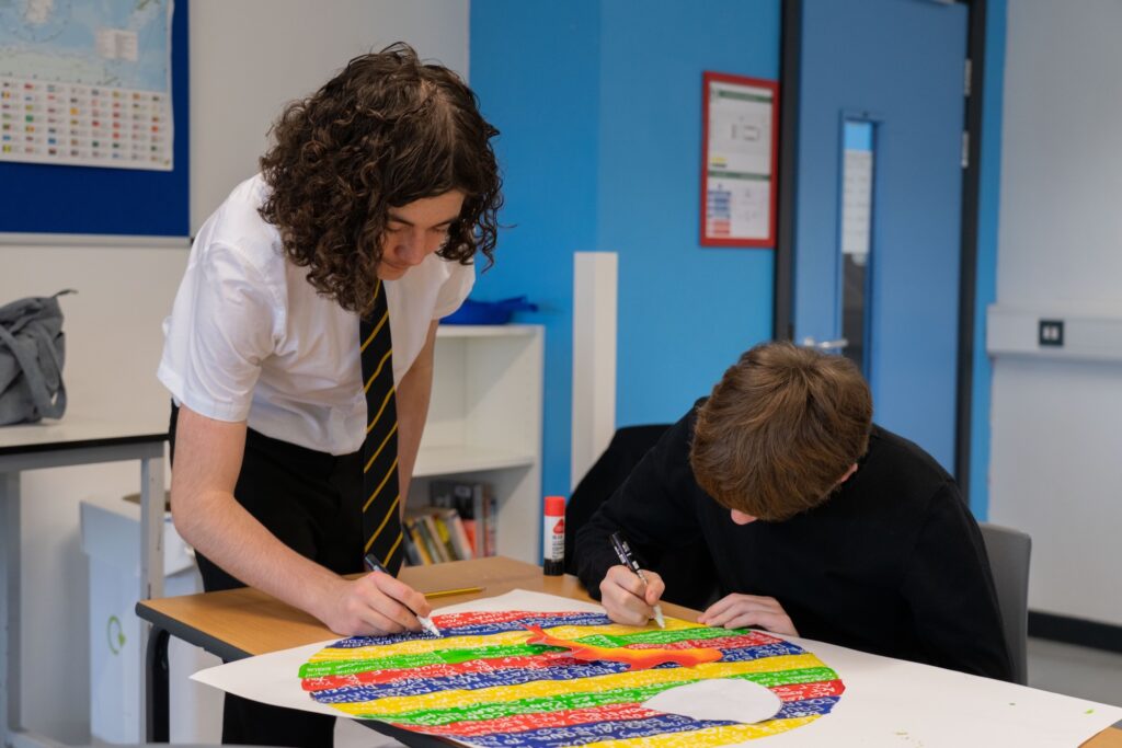 During the first term of this academic year, pupils from across our Trust came together for a special creative project celebrating the theme of community. Hosted at Turves Green Boys’ School, pupils from each of our schools collaborated to design and create a vibrant collection of artwork that reflected what community means to them, their classmates, and their individual school environments.