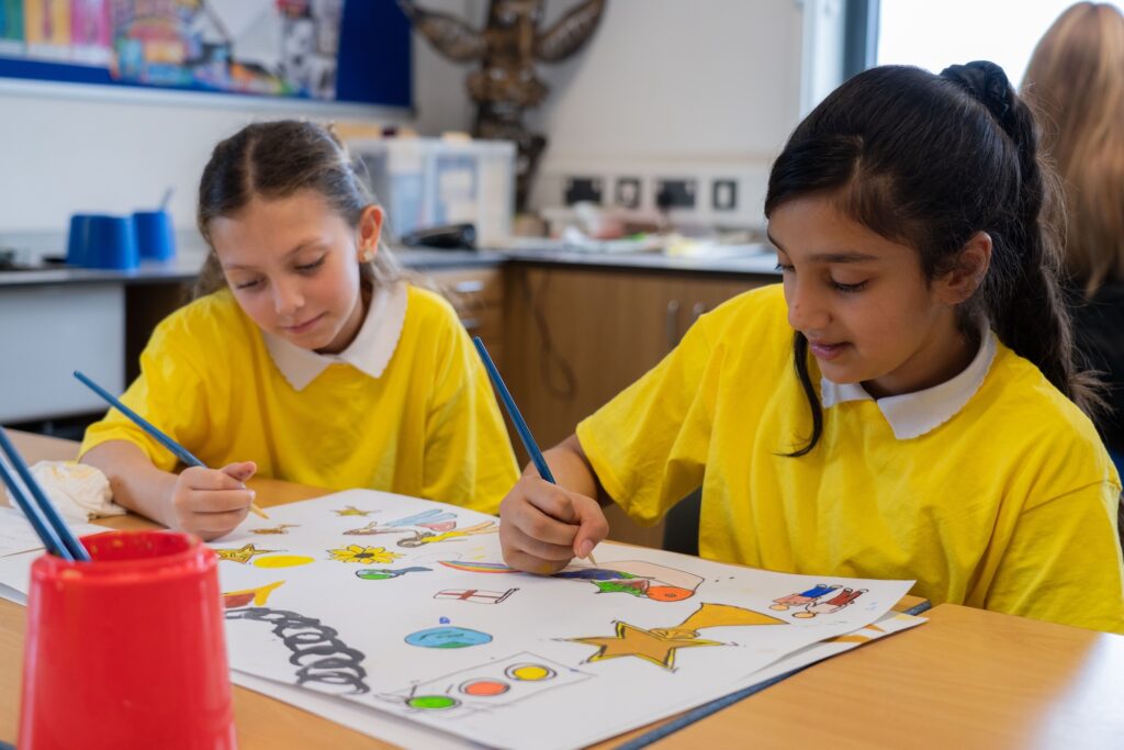 Working side by side, pupils shared ideas, stories, and artistic styles to produce individual pieces. Following the event, the artwork has now been transformed into signage and distributed to every school within the Trust. This means that each school now proudly displays a piece of the collective mural, ensuring that a small part of every school community is represented across all of our sites.