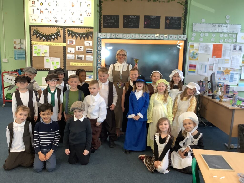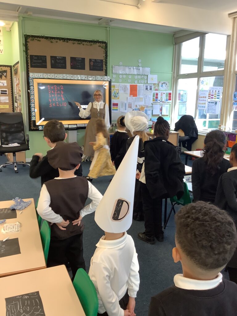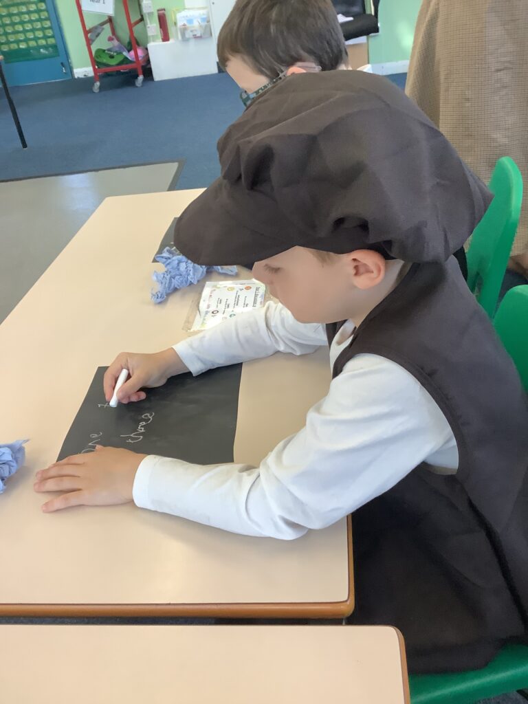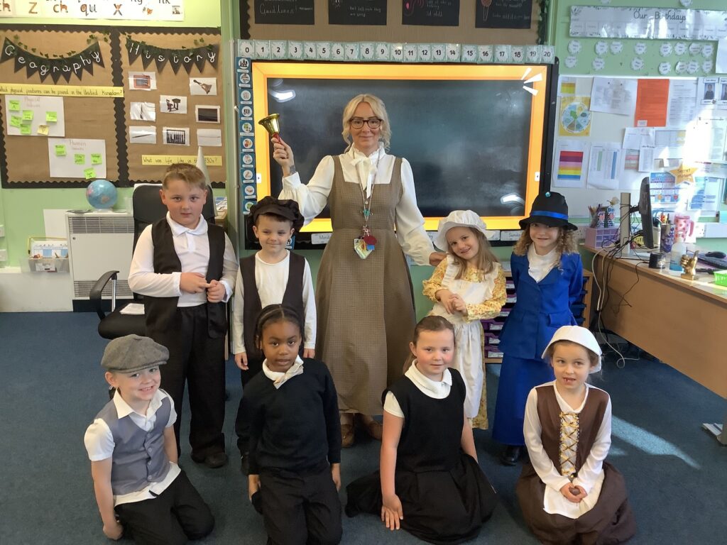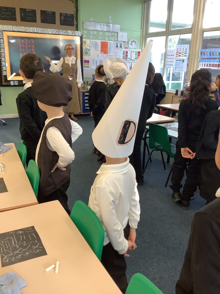 Year 1 have had a great day so far reliving the Victorian School era. The children have experienced what it's like to go to school in the Victorian era and used blackboards to do work today. Chanting their times tables. Playing old school games.