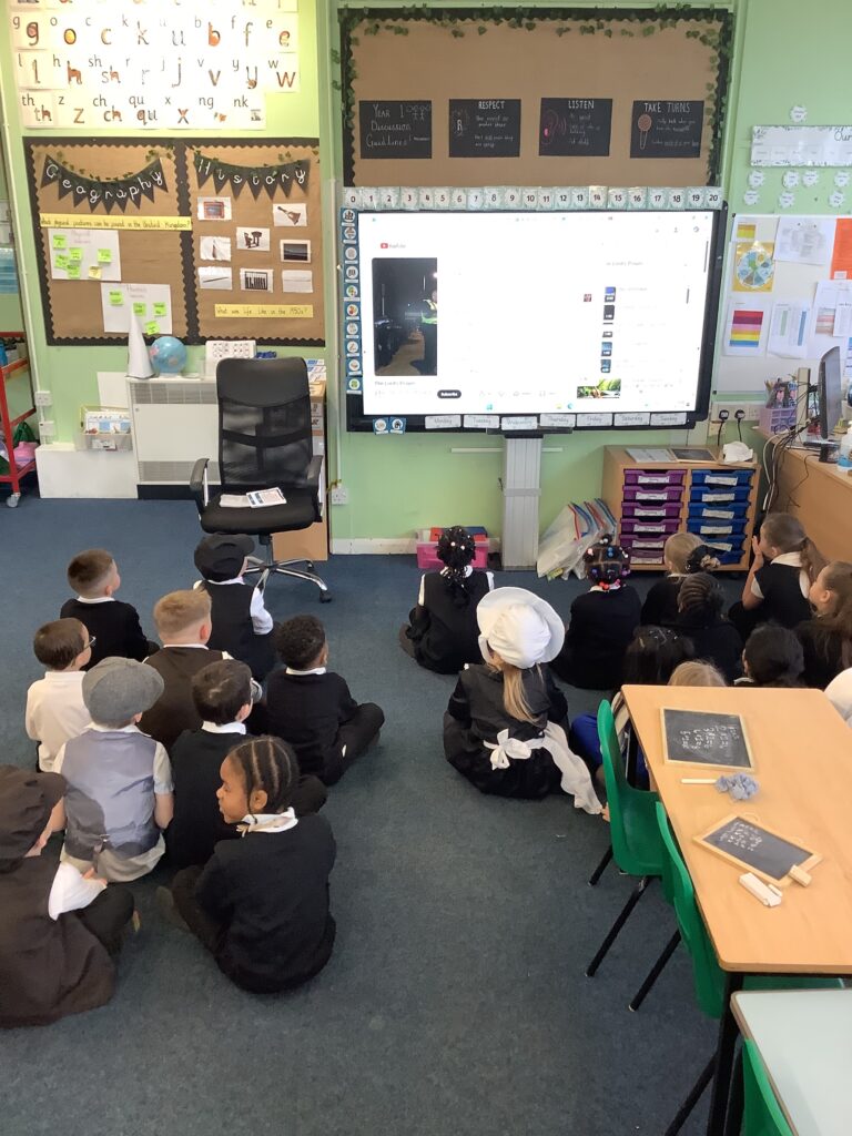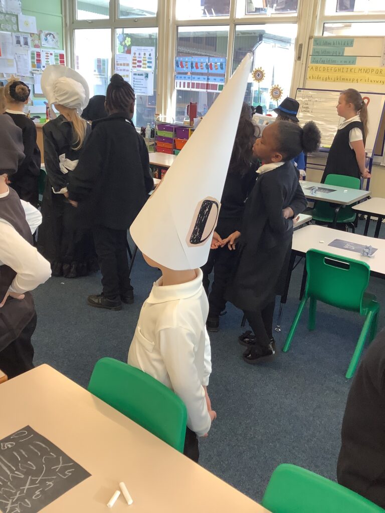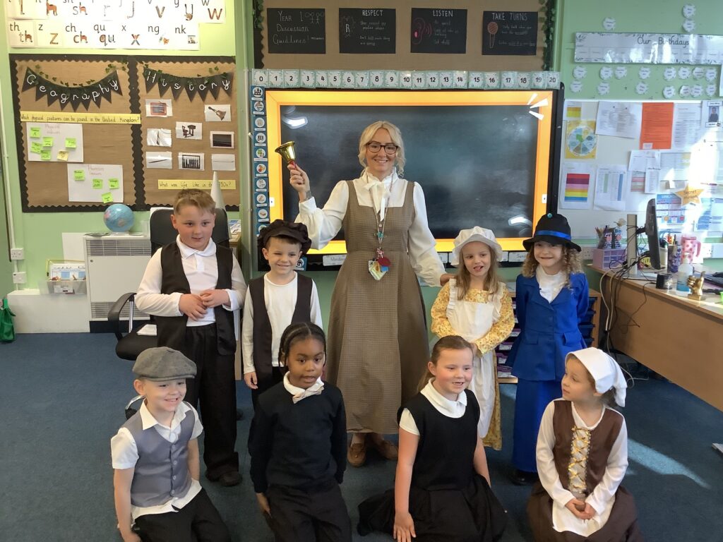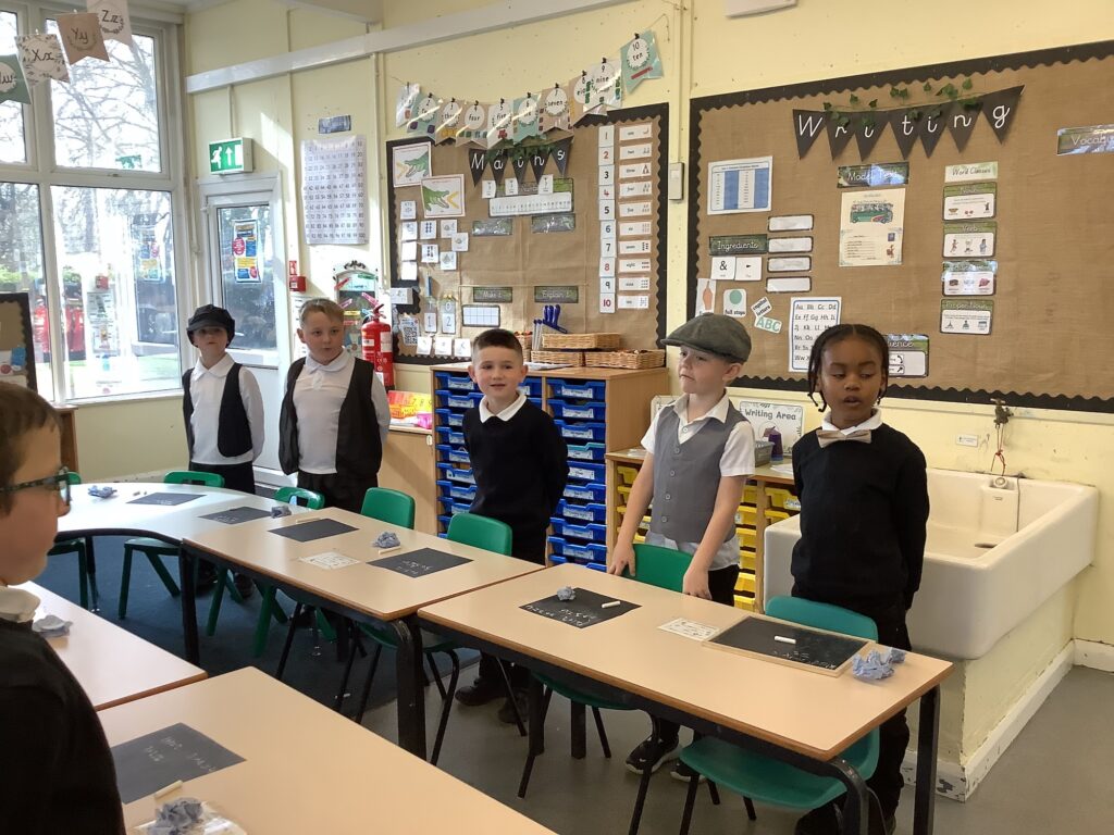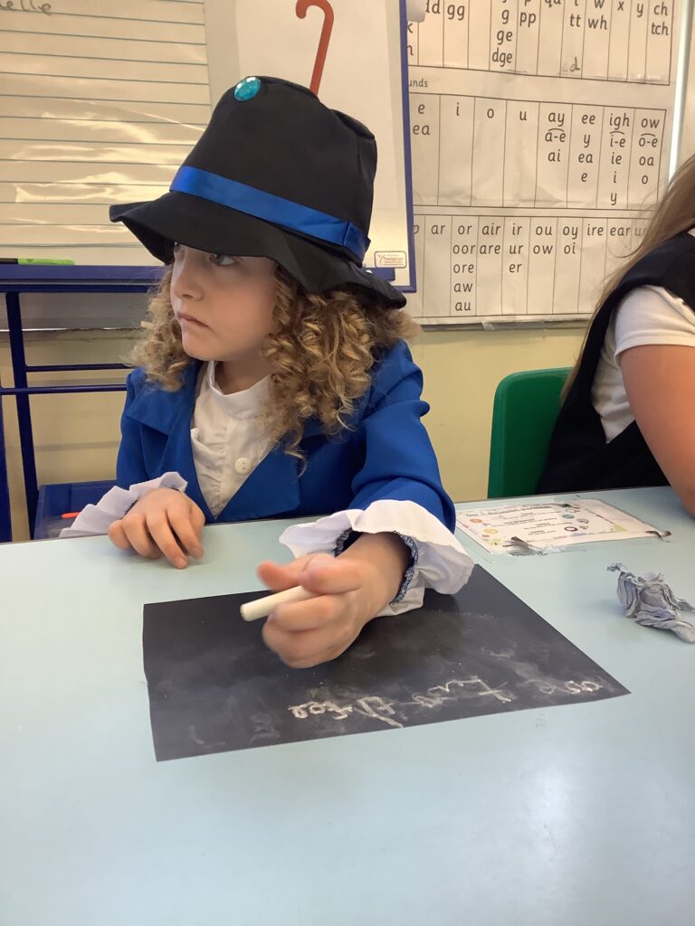 Year 1 have had a great day so far reliving the Victorian School era. The children have experienced what it's like to go to school in the Victorian era and used blackboards to do work today. Chanting their times tables. Playing old school games.